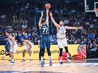 RIGA (LETTONIA) (ITALPRESS) - L'Italbasket perde agli ottavi contro la Slovenia ed è fuori dagli Europei. La squadra di Gianmarco Pozzecco ha ceduto 84-77 (parziali 19-29, 40-50, 56-72). Top scorer e assoluto protagonista dell'incontro è stato Luka Doncic, autore di 42 punti anche se gli azzurri dopo un avvio in salita (anche -19 in avvio di secondo quarto) sono arrivati fino al -1 (77-78) nella parte finale del match.- foto Ipa Agency -(ITALPRESS).